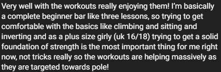 Consistent progress with structured on- and off-the-pole workouts and community support